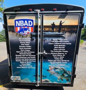 If you wish to place your name on the new NBAD Trailer, please print out the form and send along your donation payment. For Bass Club organizations, please be sure you send in a logo to reflect your organization. Your donation is greatly appreciated and is tax deductible.